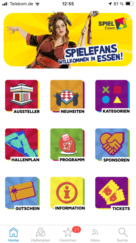 Bevor wir mit den Spielen weitermachen, noch ein Wort zur SPIEL-App. Diese wurde im Vergleich zum Vorjahr noch einmal verbessert und hat sich als äußerst hilfreich erwiesen. Der Hallenplan und die integrierte Navigation erleichtern das Suchen bestimmter Verlage und Spiele ungemein. Auch die Kurzbeschreibung der Spiele und die Möglichkeit Favoritenlisten mit Relevanz zu generieren sind super.