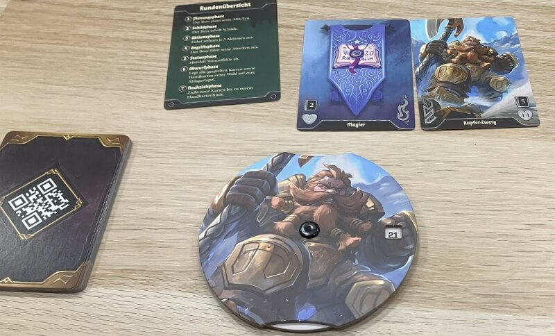 Worum geht es? Wir haben mit Boss Fighters QR einen klassischen Monster Boss Mechanismus. Die Spielenden versuchen durch Ausspielen von Karten einem Monster so viel Schaden hinzuzufügen, bis es erledigt ist. Runde um Runde wird versucht, mit unterschiedlichen Waffen Schadenspunkte zu vergeben und den eigenen Helden vor Angriffen des Monsters zu schützen, denn nach jeder Angriffsrunde schlägt das Boss-Monster zurück. Erbarmungslos!
